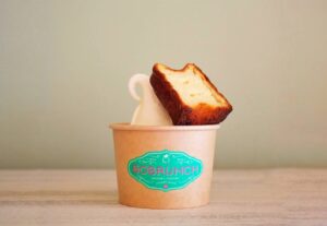 生地にヨーグルトを使用したBOBRUNCH人気のカヌレと、ソフトクリームが一度に味わえる贅沢な商品。