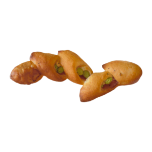 麦の穂のような形をしたヨーグルトパン、エピ。端まで香ばしいベーコンと枝豆がたっぷり入っています。