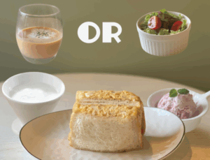 ヨーグルトを使用したパンを使用したサンドイッチ。サンドイッチはランチセットもございます。