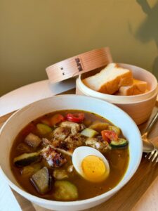 ヨーグルトのホエーを使用したスープカレー。ヨーグルト食パン、ヨーグルトセット