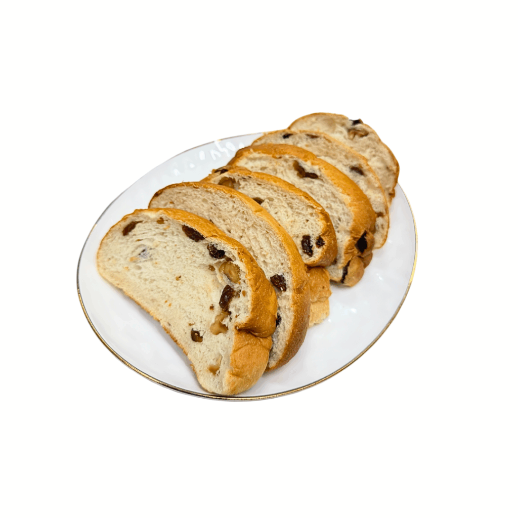 自家製ヨーグルト漬けしたレーズンと触感が良いクルミを使用した大きい丸食パンです。